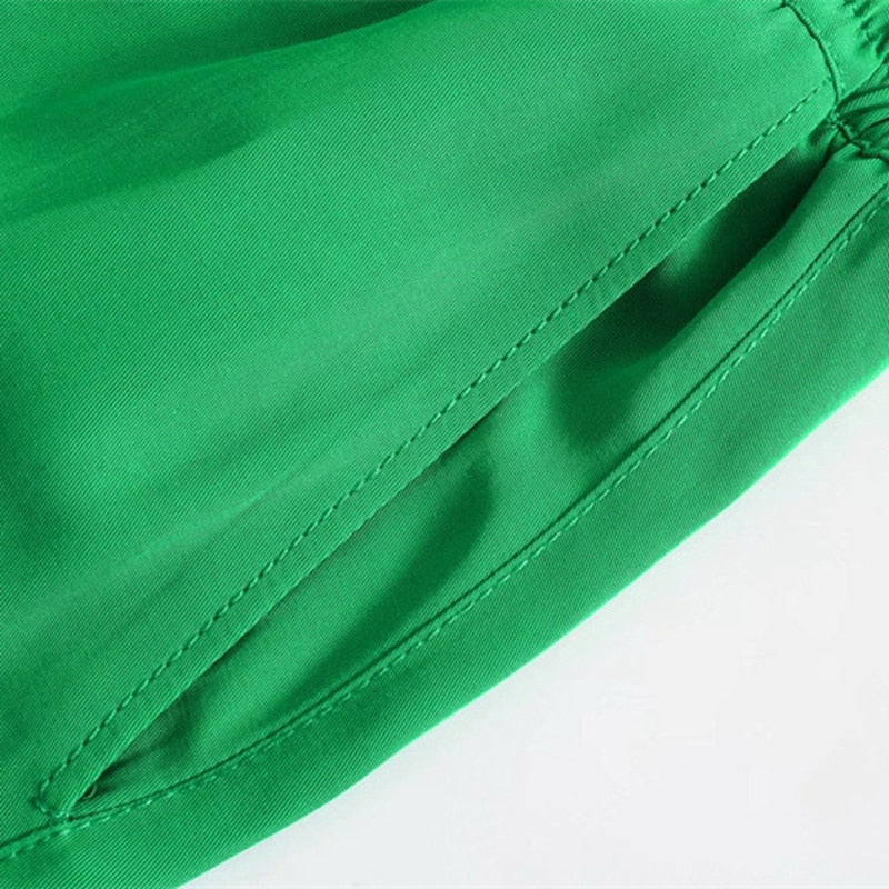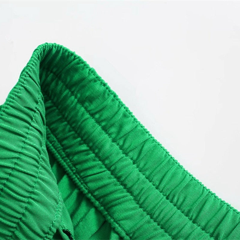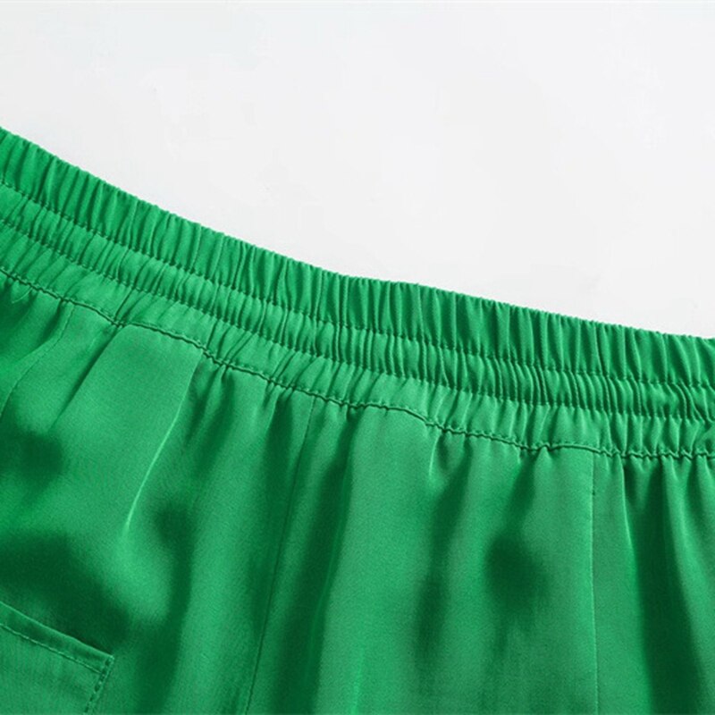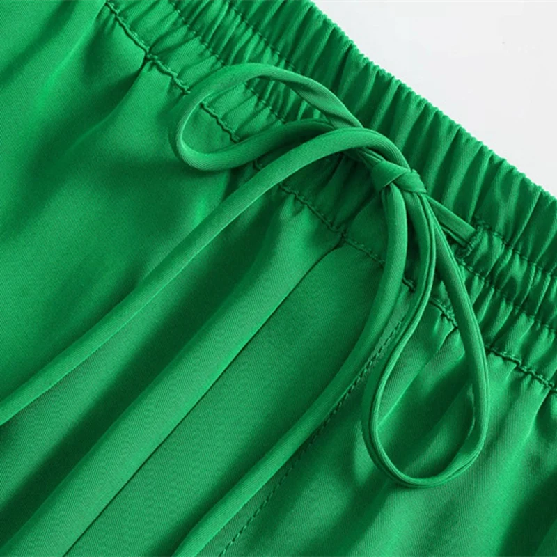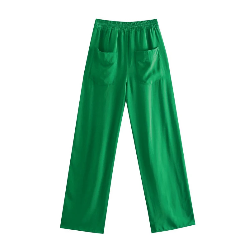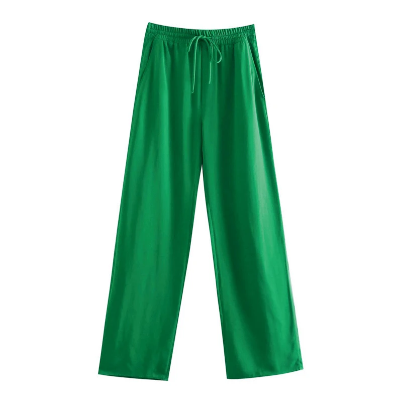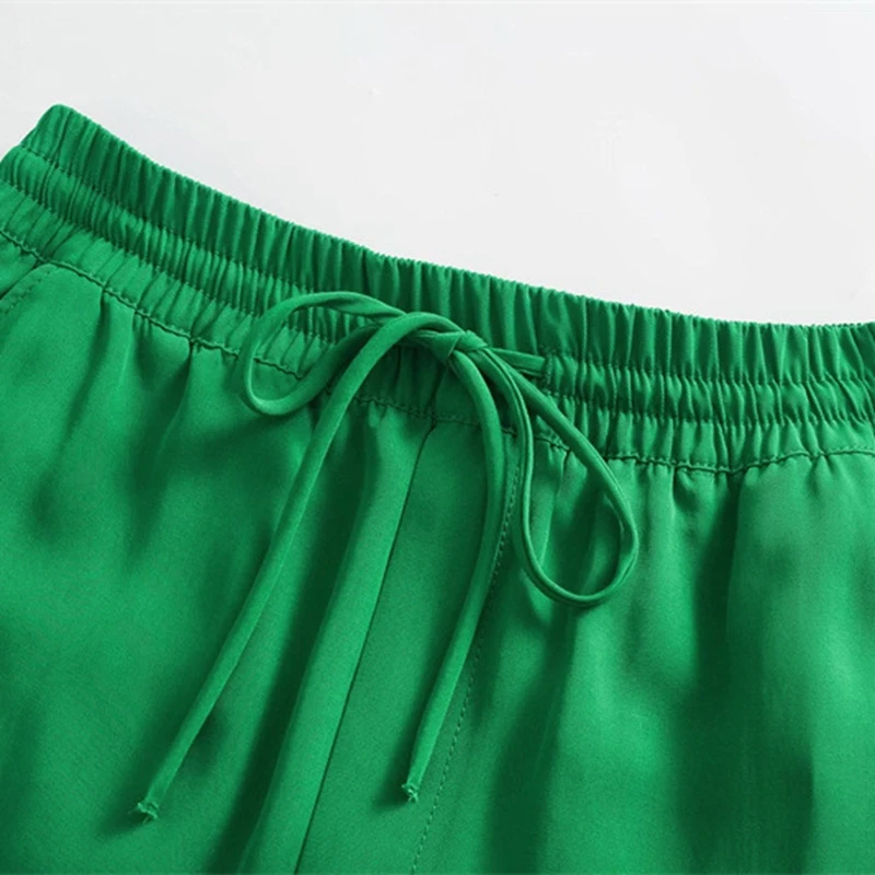 Modelagem larga. Dois bolsos frontais e dois traseiros. Elástico na cintura. Com amarração na cintura. Cintura alta. Sem estampa liso.